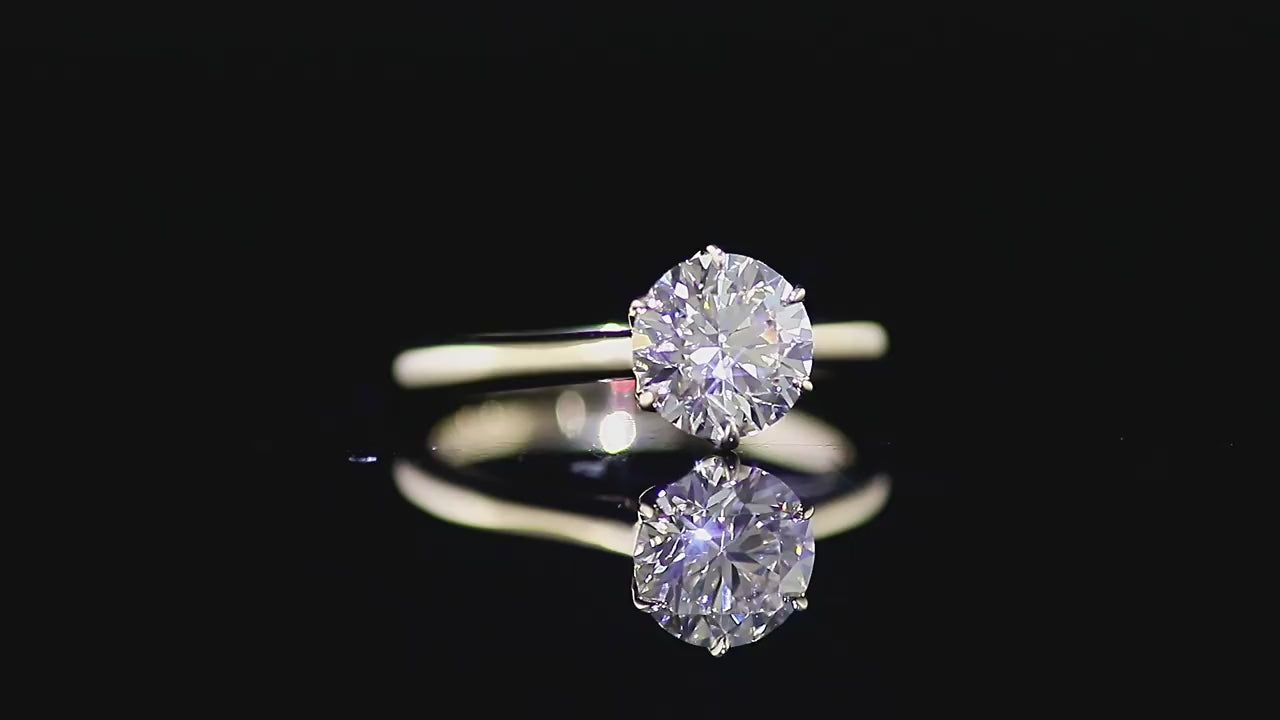 The quintessential symbol of devotion. A breathtaking 1.5 carat D VVS1 lab-grown diamond is securely held by six elegant claws in a traditional 14/18K solid gold band, maximizing light return and brilliance.